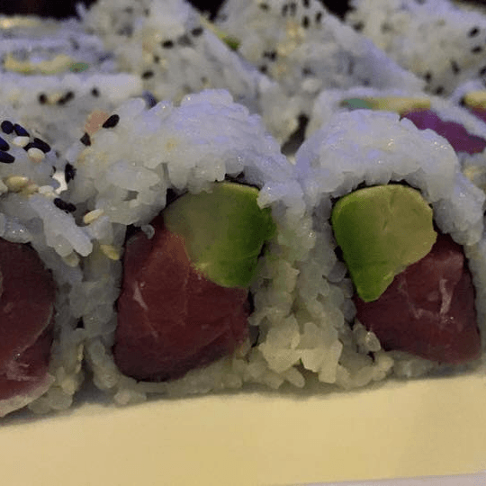 White tuna, avocado, cucumber, topped white tuna & light spicy mayo