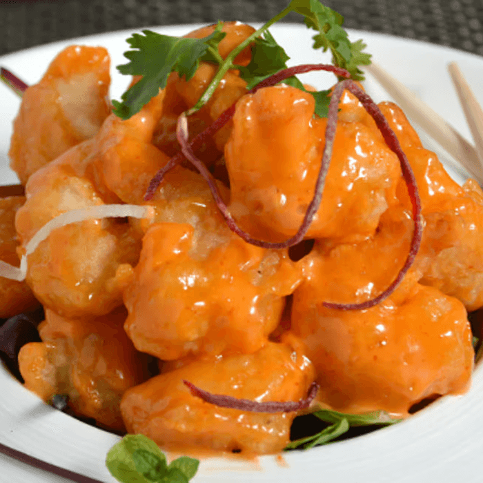 Fried shrimp in sweet & sour glaze. Served with white rice