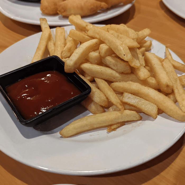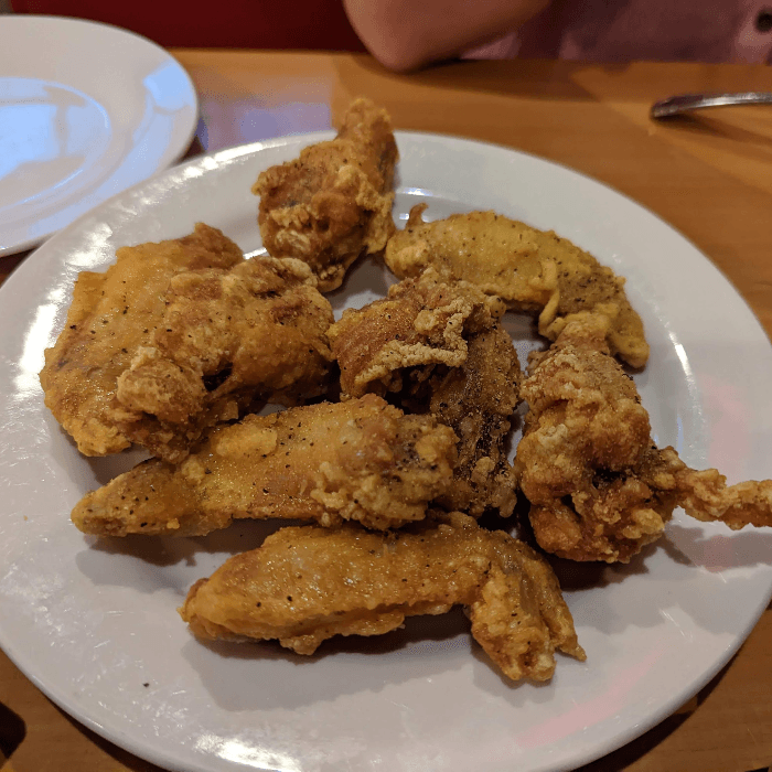 (2) beef sticks, (2) chicken wings, (2) chicken sticks (2) shrimp tempura, (2) spring rolls, (4) crab rangoons and (4) chicken fingers